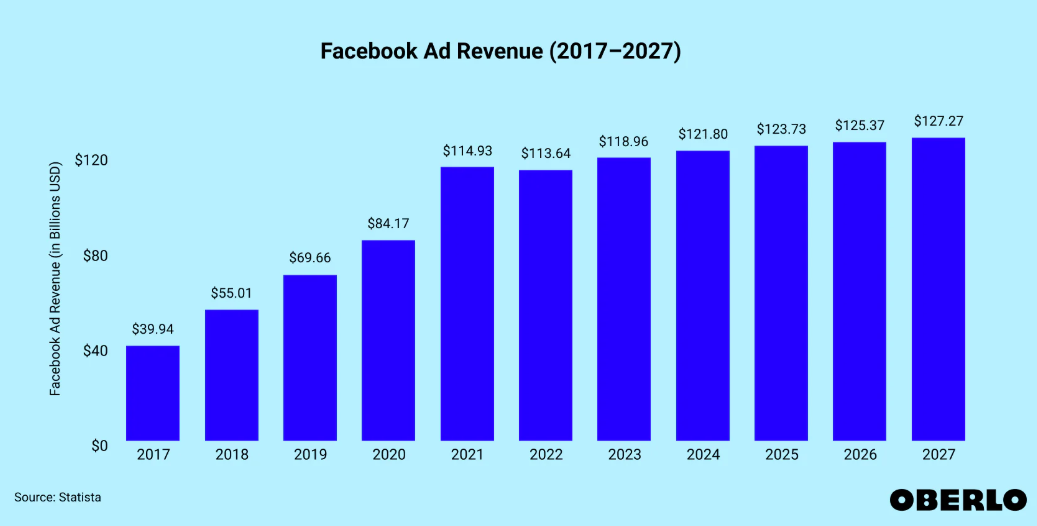 According to Oberlo, Facebook ad revenue reached $123.73 billion in 2025, and it’s expected to keep growing. Experts predict that this figure will grow even more in the coming years.